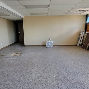1,804 square feet total, showroom, 2 bathrooms & storage area in back with exterior door.
